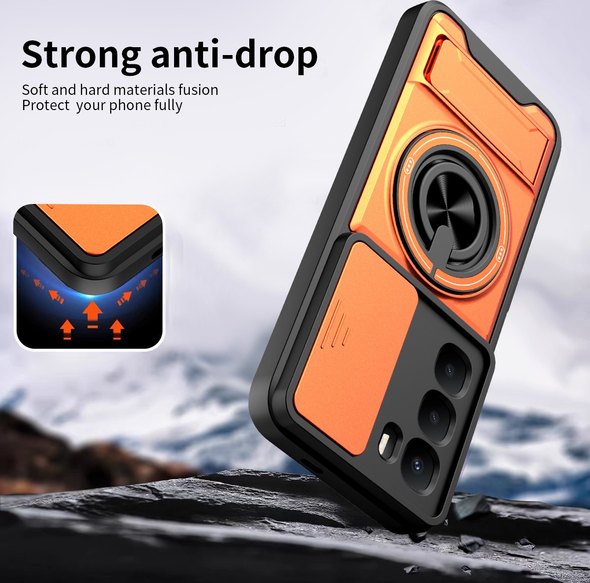 2.Unique camera window design, sliding lens cover and raised bezel protect your phone from scratches. It slides smoothly from side to side to hide the camera perfectly. In addition, the sides of the sliding cover are slightly locked so that it won't slide freely.