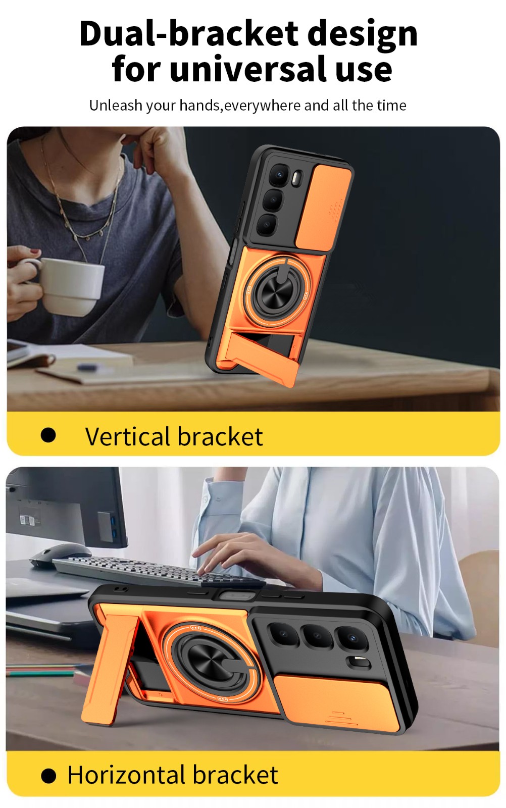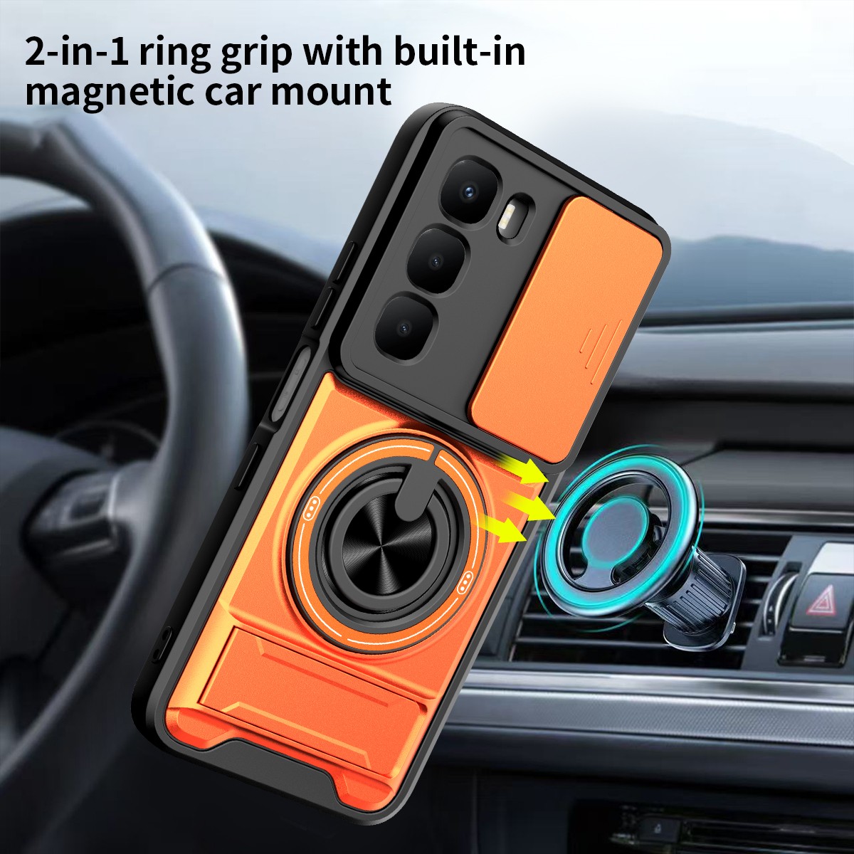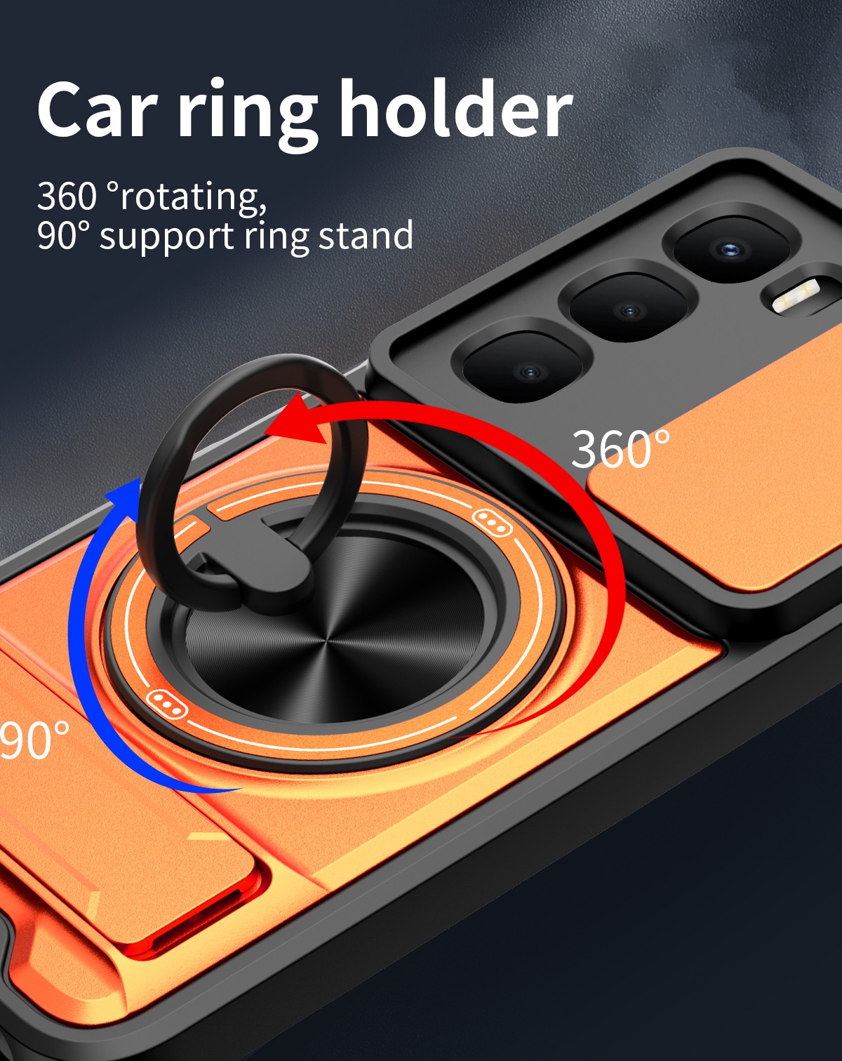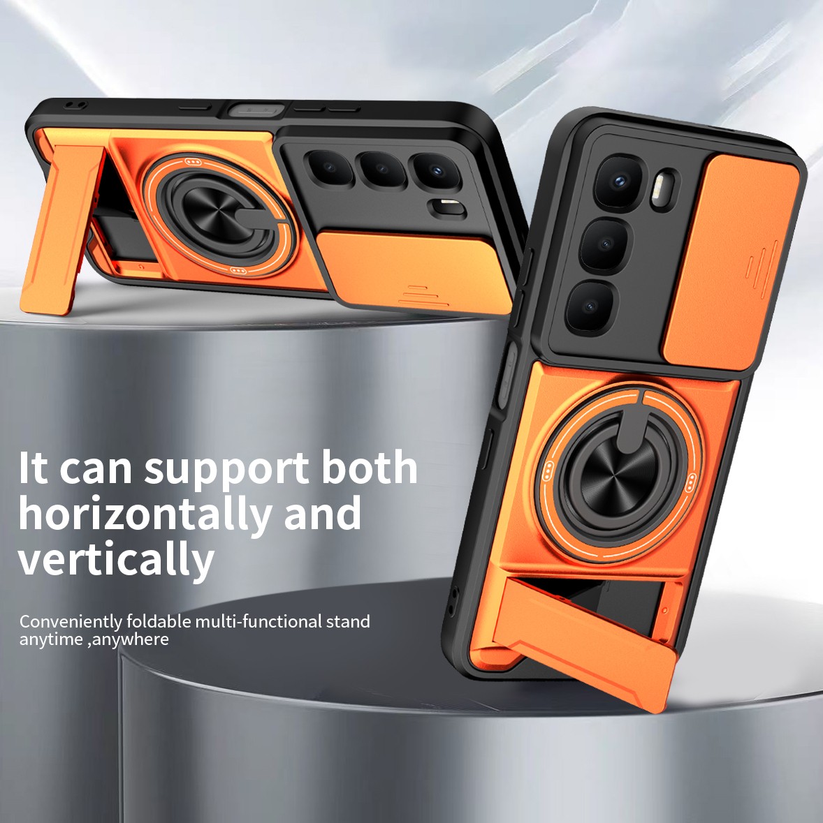 3.The swivel ring offers two stand modes for vertical and horizontal viewing. The built-in stand allows you to conveniently watch videos and movies without having to hold it in your hand, getting the comfort and stability you need. In addition, the built-in metal magnetic sheet provides stable attachment and can be directly attached to the magnetic car mount.
