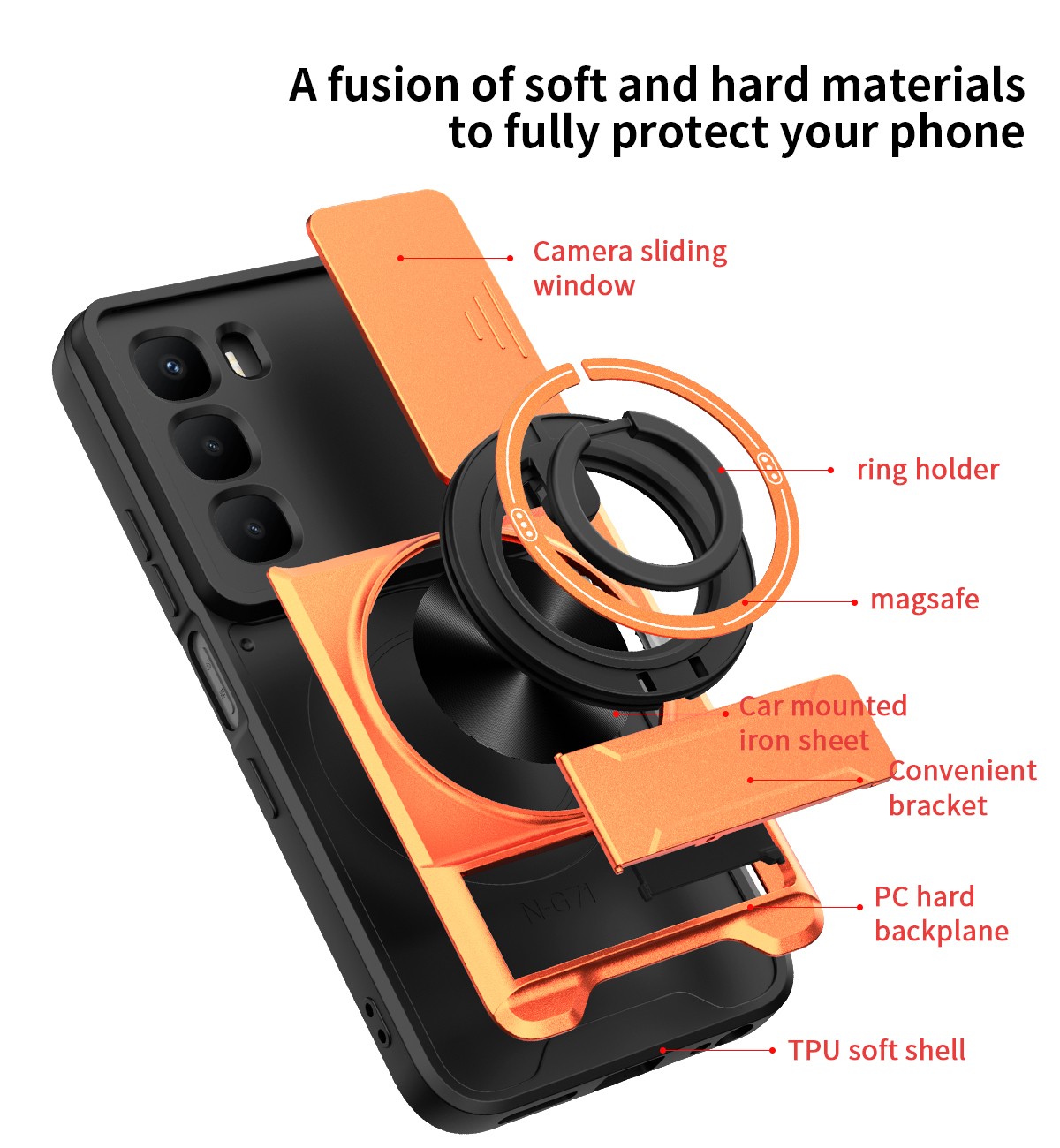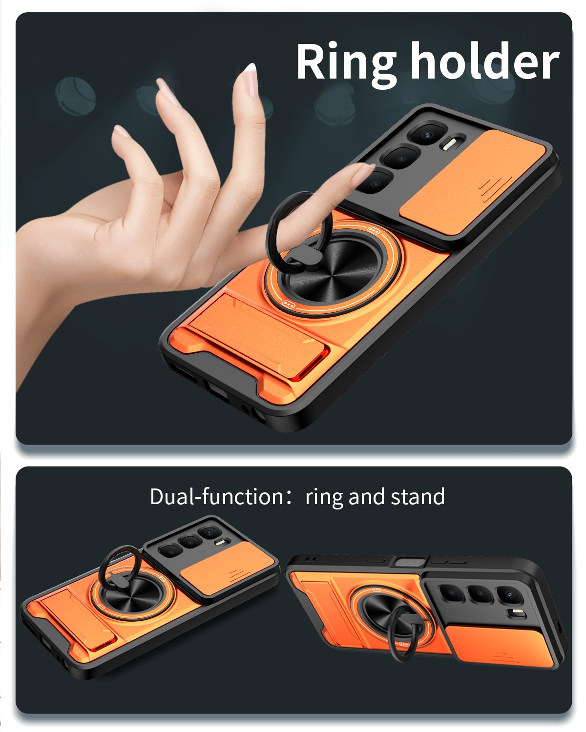 Camera Slide Cover Ring Holder Magnetic Stand Case For Infinix Hot 60i 4G X6728